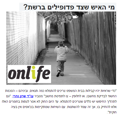 מתוך OnLife: עו"ד פלילי שרון נהרי על עבירות פדופיליה ברשת