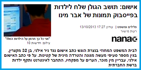 מקרים של עבירות מין באמצעות מחשב הפכו לצערנו לנפוצים יותר בשנים האחרונות, בשל הטכנולוגיה הזמינה כמעט לכולם. אחד המקרים פורסם באתר nana10 – כתב אישום הוגש נגד ניר אילני מקצרין, שמואשם כי דרך הפייסבוק הטריד מינית ילדות בגילאים 11 ו-12.